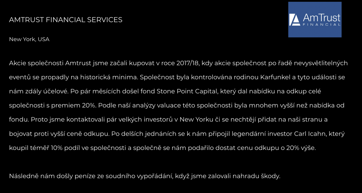 Naše strategie spočívá v aktivním přístupu k investicím s cílem identifikovat a řešit problémy ve vedení společností, které negativně ovlivňují jejich výkonnost. Vybereme si investiční příležitosti s vysokým potenciálem růstu a zaměřujeme se na kvalitu a dynamiku těchto investic. V době, kdy mnoho společností volí konzervativní přístup a vyhýbají se rizikovým investicím, my naopak vidíme tyto situace jako unikátní příležitosti pro investice. Využíváme událostí a uděláme takové kroky, které pomohou napravit a optimalizovat chod společností. Naše aktivistické přístupy nám umožňují přinést pozitivní změny a zvýšit hodnotu investic pro naše klienty.
